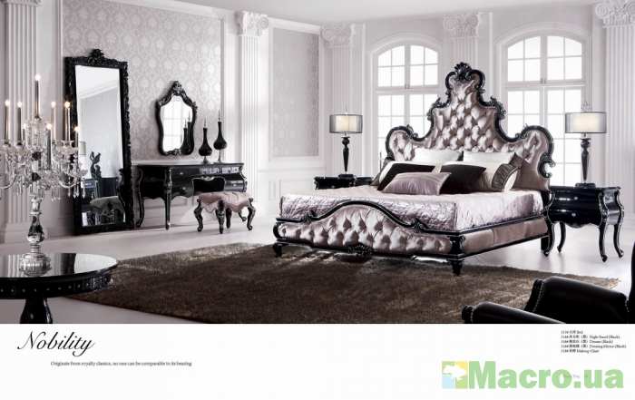 Спальня Nobility черная величественно, массивно, грациозно и ярко смотрится в интерьере любого пространства с соответствующим оформлением и поможет выявить ярко особенности любой комнаты, сделает так, чтобы находиться в ней оказывалось настоящим удовольствием, наслаждением. Купить спальню Nobility черная реально с огромной, большой, широкой кроватью, спинка изголовья которой изготовлена в виде огромной короны, и имеет дополнительно мягкую обивку с применением не токсичных и качественных материалов. Отзывы спальни Nobility черная настойчиво смогут рекомендовать купить эту модель мебели, и как для китайского производства она и смотрится потрясающе, и сможет достойно прослужить долгое время, а также стоит более чем приемлемые и не самые большие деньги.