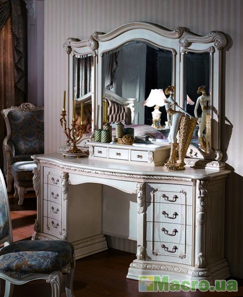 ZB208 Туалетный столик А+ZB208 Зеркало для туалетного столика А Красное дерево/ Белый с серебром 1795*530*945/1640*125*1240