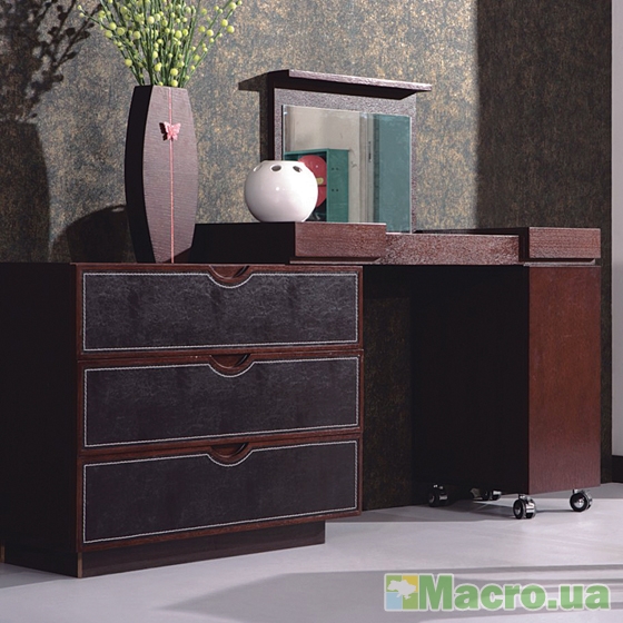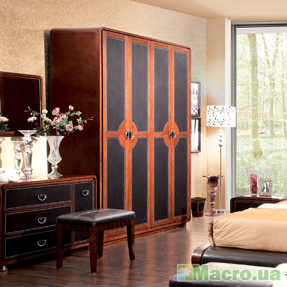 Спальня Гелия выполнена в стиле модерн. Цвет венге. Кожэанные вставки делают спальню теплой и приятной на ощупь.