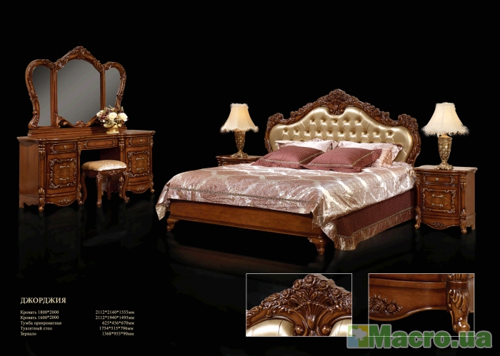 Спальня Джорджия на самом деле является оригинальной, незабываемой и очень интересной мебелью, с которой и сон, и отдых и обычное пребывание в созданном новом пространстве будет считаться настоящим удовольствием и позитивным моментом. Купить спальню Джорджия предлагается в роскошном дизайне, где широкая, очаровательная классическая кровать и туалетный столик, сделанные в одинаковом и очень солидном дизайне заставят поверить и соответствующим образом посмотреть на такой выбор. Отзывы спальни Джорджия самые интересные, перспективные, яркие и доброжелательные настолько, что невозможно будет устоять перед таким выбором и не оценить мебель по достоинству. Качество и доступная цена – вот на что вы обратите внимание в этой мебели.