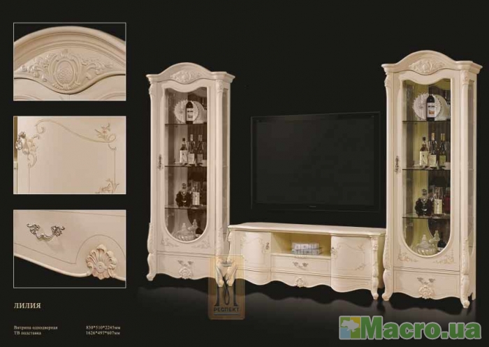 Стенка Лилия получила широкую известность, популярность, поскольку имеет исключительную декоративную отделку, поставляется со множеством специальных аксессуаров, что делает ее невероятно интересной, прекрасной и достойной высоких оценок. Годится для придания уюта, гостеприимства, роскоши интерьера. Купить стенку Лилия следует для того, чтобы преобразить домашнюю атмосферу, сделать ее комфортной, легкой и приятной в отдыхе. Витринные элементы, стеклянные вставки придают мебели перспективности, легкости, изящества. Отделка и накладные элементы, использование пенополиуретановых компонентов, сделают общее представление о нашем предложении позитивным. Отзывы стенки Лилия покажут выгоду от утонченного и изысканного дизайна.