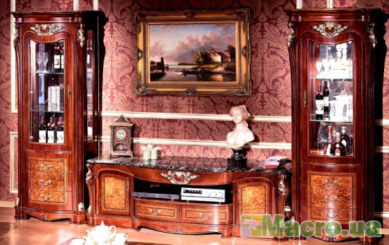 Гостиная Карпентер 223 представляет собою богатый и солидный набор мебели, отделка которого выполнялась с использованием натурального шпона, позолоты, а также приятной по внешним данным фурнитурой. Купить гостиную Карпентер 223 возможно для самого привередливого пользователя, при этом вы окажетесь однозначно удовлетворены своим выбором, решением. Наша мебель достойно и невероятно интересно дополнит интерьер и пространство как обычной квартиры, так и загородного дома. Отзывы гостиной Карпентер 223 покажут наличие множества разных элементов и предметов мебели, которые под любые размеры комнаты и выбранного пространства будут подходить предельно точно и качественно. Приятный блеск, лакированная поверхность, доступная цена – все это можно также назвать достоинствами.