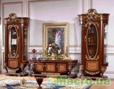 Гостиная Империал имеет соответствующий имперский дизайн и сделана в стиле Арт деко, что является популярной тенденцией в современном мире мебели. Это модульное предложение, поэтому его можно использовать как удобно, при этом максимально точно и качественно сможете организовать представляемый интерьер в идеальном виде. Купить гостиную Империал можно с очаровательными и солидными боковыми витринами со стеклянными дверками и соответствующими полочками, экзотической художественной центральной тумбой порталом для размещения предметов. Отзывы гостиной Империал приятно порадуют и помогут найти самый лучший и правильный вариант современной и перспективной мебели достойного качества. Отделка выполняется шпоном, вставками, фурнитурой и резными элементами.
