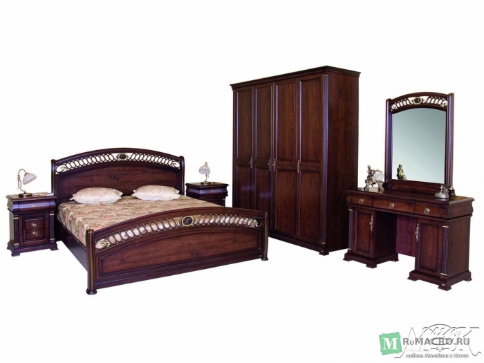 Великолепный и удобный образей спальной мебели - это наиболее подходящее описание спальни Нотти. Комплект спальня Нотти включает в себя кровать, шкаф, трюмо и прикроватную тумбочку. Благодаря такому классическому набору мебели, нахождение в вашей спальне станет комфортным и удобным, как никогда.
