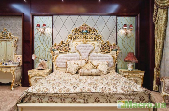 Спальня Lux2 во многом станет для Вас приемлемой, уникальной, очаровательной, будет считаться самым разумным, выгодным и достойным выбором, по крайней мере за свою стоимость, и только одного внешнего вида тут окажется более чем достаточным, чтобы убедиться в разумности принимаемого решения, относительно возможности ее установить в своем доме. Купить спальню Lux2 особенно окажется приятным с огромной и фантастической по дизайну кроватью, в котором спинка изголовья точно выполнена в королевском типе, оформлении, где есть и натуральная кожа, и натуральное дерево, и позолоченные элементы, и дополнительные фигурные узорные части с резьбой по дереву. Отзывы спальни Lux2 несомненно заставят выбрать Вам исключительно ее.